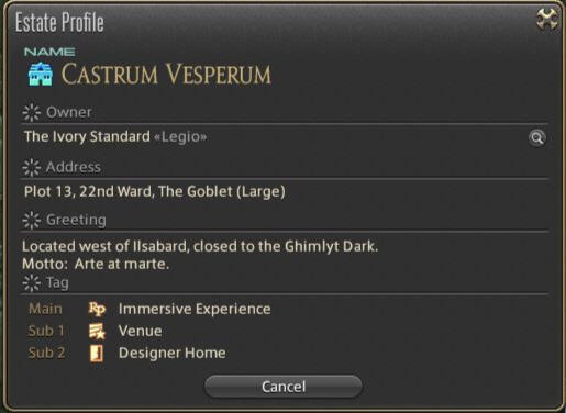 Castrum Vesperum is the first garlean-themed large housing hub in Crystal.It has been designed to provide as many IC areas as possible for players wanting to play their garlean characters in Ilsabard.Every rooms within the Castrum, and all the FC rooms labeled RP are IC space you can use for your RPs, public and private alike. You do not need to ask our permission, but we expect you to follow our code of conduct strictly.We wish to facilitate connections between the different garlean communities. We are happy to extend a cross-world linkshell and a discord invitation on request.